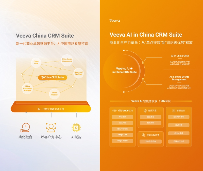 Veeva China CRM Suite从CRM客户管理,到全渠道沟通,为中国市场需求和客户痛点量身定制,助力药企实现一站式管理客户营销全流程,提高运营效果,有效提升医生互动水平,商业化迈向新阶段。