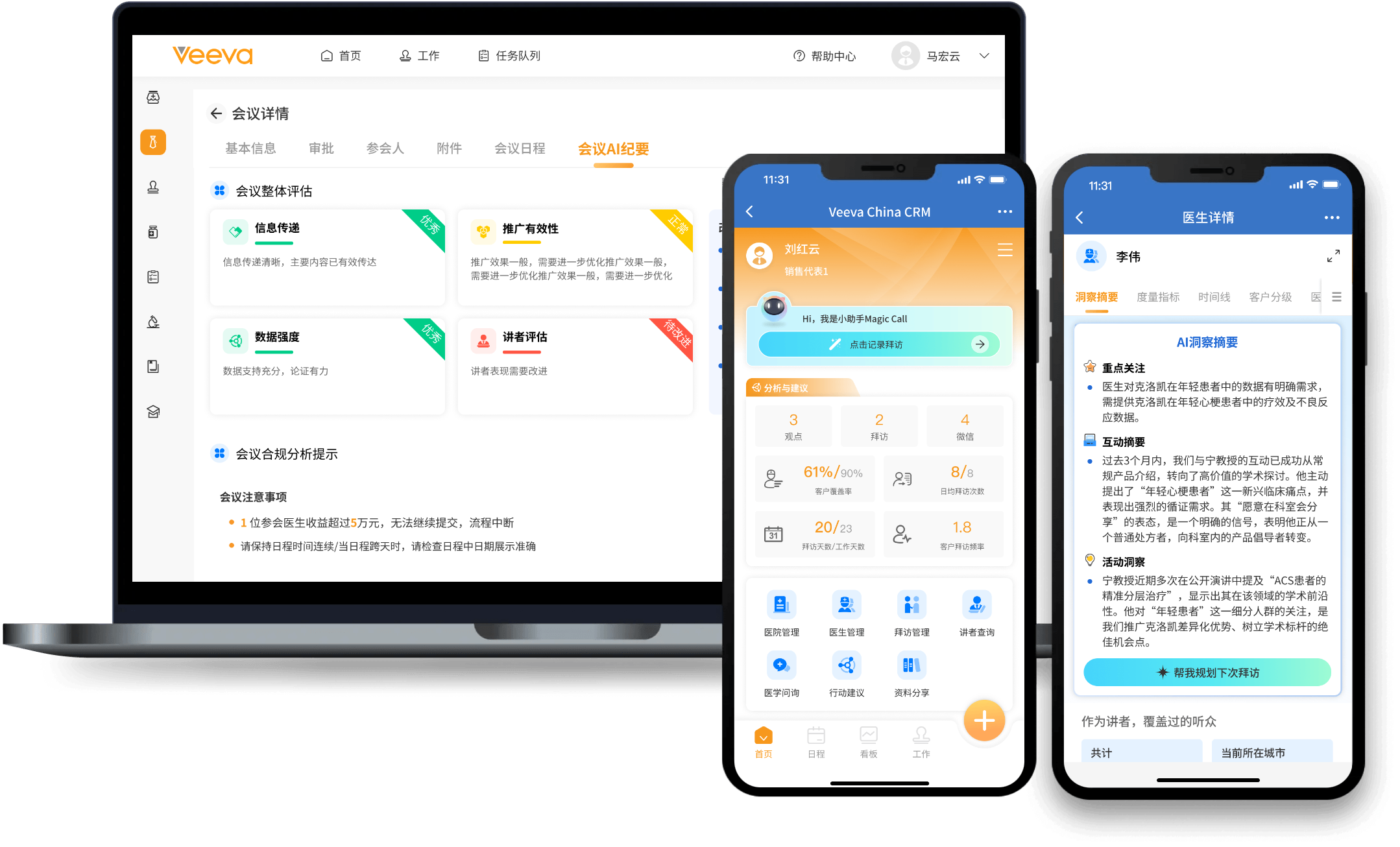 Veeva China CRM Suite,为中国生命科学行业专属打造的新一代商业卓越营销平台,以客户为中心,帮助企业合规化、数字化管理药品上市营销全流程,赋能医药代表,促进销售、市场、医学团队间的协作,助力企业实现商业卓越运营!