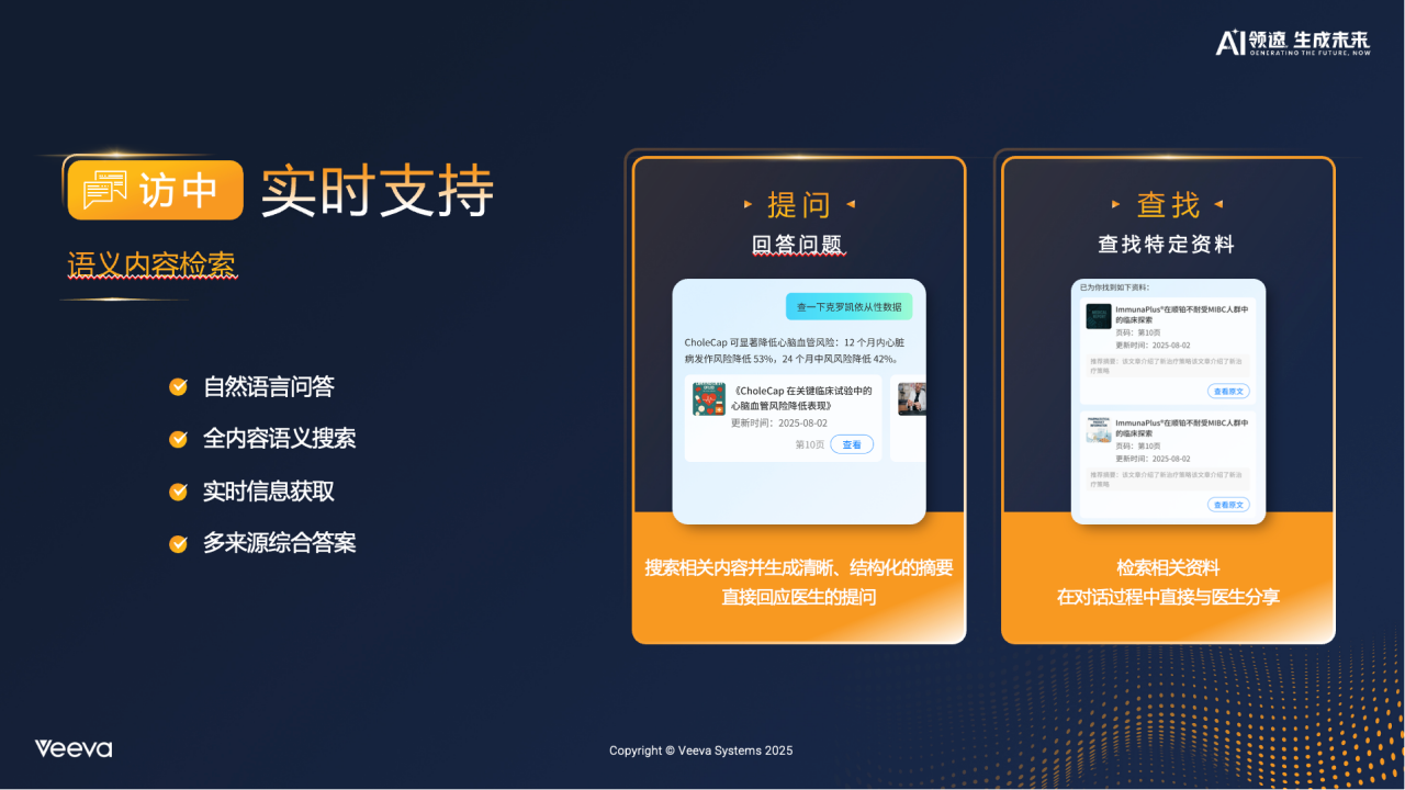 - 设定目标,告别“刷脸”:AI将洞察转化为具体的拜访目标,预测医生最关心的问题